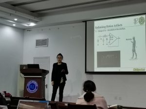 孙教授介绍了其研究背景,可穿戴设备为预防为主以人为中心的新型医疗方式提供解决方案。为实现建立embroidered wearable electronics的平台技术来测量各种人体重要的信号这一目标,她们分析了可穿戴设备实现的难度,依据Skin-Electrode Interface Modeling的最新技术,建立了一个新的物理模型并提供了一个综合性的解决方案,并介绍了其应用情况。