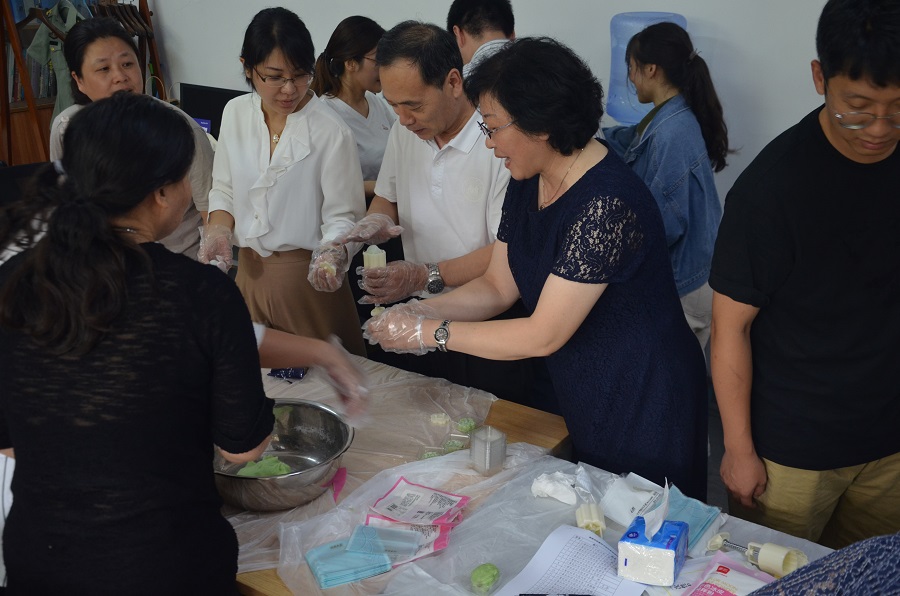 月饼制作环节则是集知识、实践和美食于一体,段董事长与老师们一起参与了冰皮月饼的制作,大家精心挑选自己心仪的雕花模具,印出漂亮的形状和印花,一个个模样可爱、五颜六色、精致优美、让人垂涎欲滴的冰皮月饼在大家的巧手下诞生了。通过制作冰皮月饼,参与活动的教职工不仅品尝到自己动手制作月饼的鲜美,而且感受到了中国传统文化的魅力。