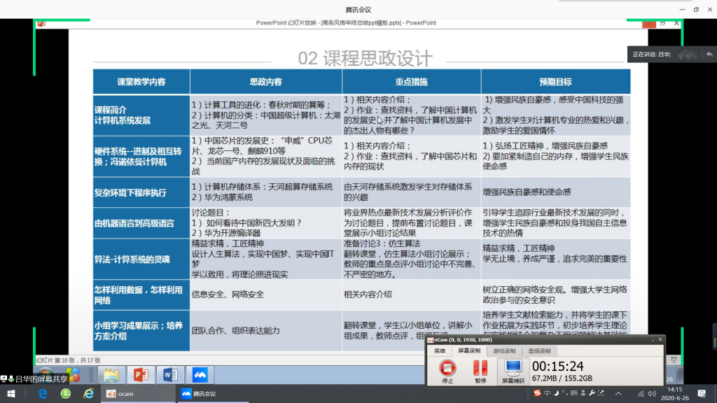 计算机系的老师们结合所授课程,认真准备了课程思政案例设计方案。