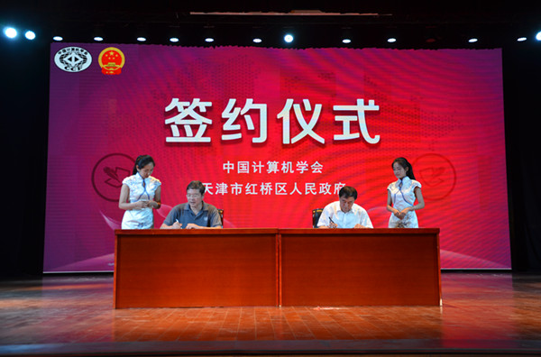 中国计算机学会秘书长唐卫清和红桥区人民政府副区长刘玉明签订战略合作框架协议
