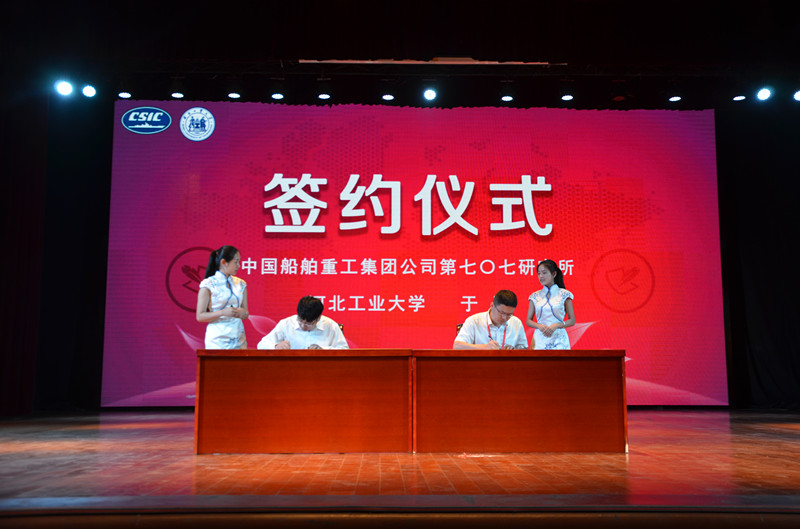中船重工707研究所负责人签约代表与员工代表于晟签订了就业协议