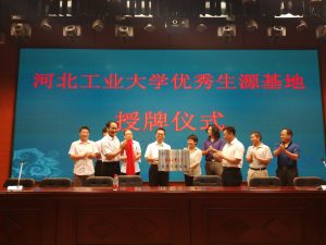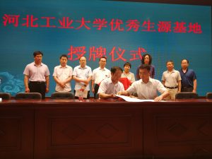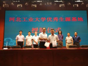 6月20日下午,公司优秀生源基地建设挂牌队伍赶赴第二站藁城一中,藁城一中董事长刘虎成、副董事长陈建立、副书记宋建辉参加了仪式。商书记首先对藁城一中长期以来为永利集团官网输送大批优秀学子表达了感谢,表示永利集团官网将利用自己综合性大学的资源优势,为藁城一中在教育、教学、管理等方面提供咨询,并大力支持藁城一中做好优秀员工的培养工作。刘虎成董事长对永利集团官网选择藁城一中作为优质生源基地表示衷心的感谢,藁城一中将以此为契机,进一步提高办学质量,与河北工大展开更深入更广阔的合作,实现教育资源共享,促进双方互惠共赢,共同发展。刘虎成董事长表示公司将加大对河北工大的宣传力度,积极引导毕业生报考,为永利集团官网输送更多的优质生源。商书记和刘董事长分别代表永利集团官网和藁城一中双方签署协议书,并举行了授牌仪式。永利集团官网党支部书记田红丽老师代表实验室党支部与藁城一中对接,并决定派支部党员代表参加23日为永利集团官网专门组织的招生宣传活动。