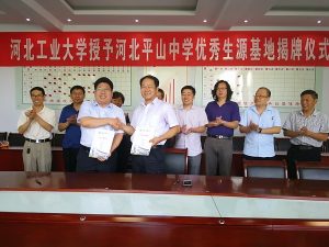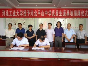 6月22日上午,公司优秀生源基地建设挂牌队伍赶赴此次对接最后一站平山中学,平山中学董事长郭建国就此次对接进行了接洽。商书记代表永利集团官网表达了对平山中学不断输送、培养优秀学子的感谢,并表示平山中学位于西柏坡革命圣地平山县,培养出了大批优秀学子,希望更多的平山中学员工报考河北工大。郭建国董事长对永利集团官网选择平山中学作为优质生源基地表示衷心的感谢,平山希望以此为契机,与河工大进一步加强联系,输送更多的优秀生源,并对两校未来的合作充满信心和期望。商书记和郭董事长分别代表永利集团官网和平山中学双方签署协议书,并举行了授牌仪式。永利集团官网党支部书记陈海永老师代表永利集团官网党支部与平山中学对接,并决定多留一天参加23日到平山中学高三毕业仪式,为同学们报考提供更大的支持。