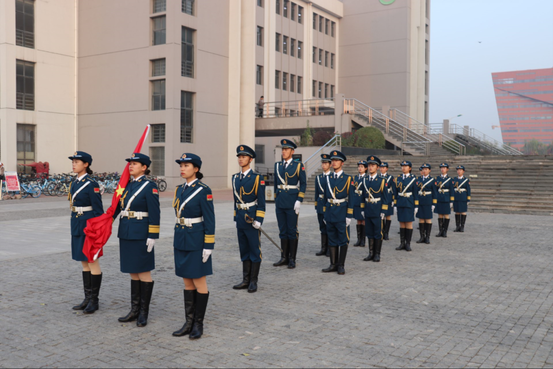 仪式结束后,同学们迎着清晨乍现的微光合影留念,开启新一天的征程。
