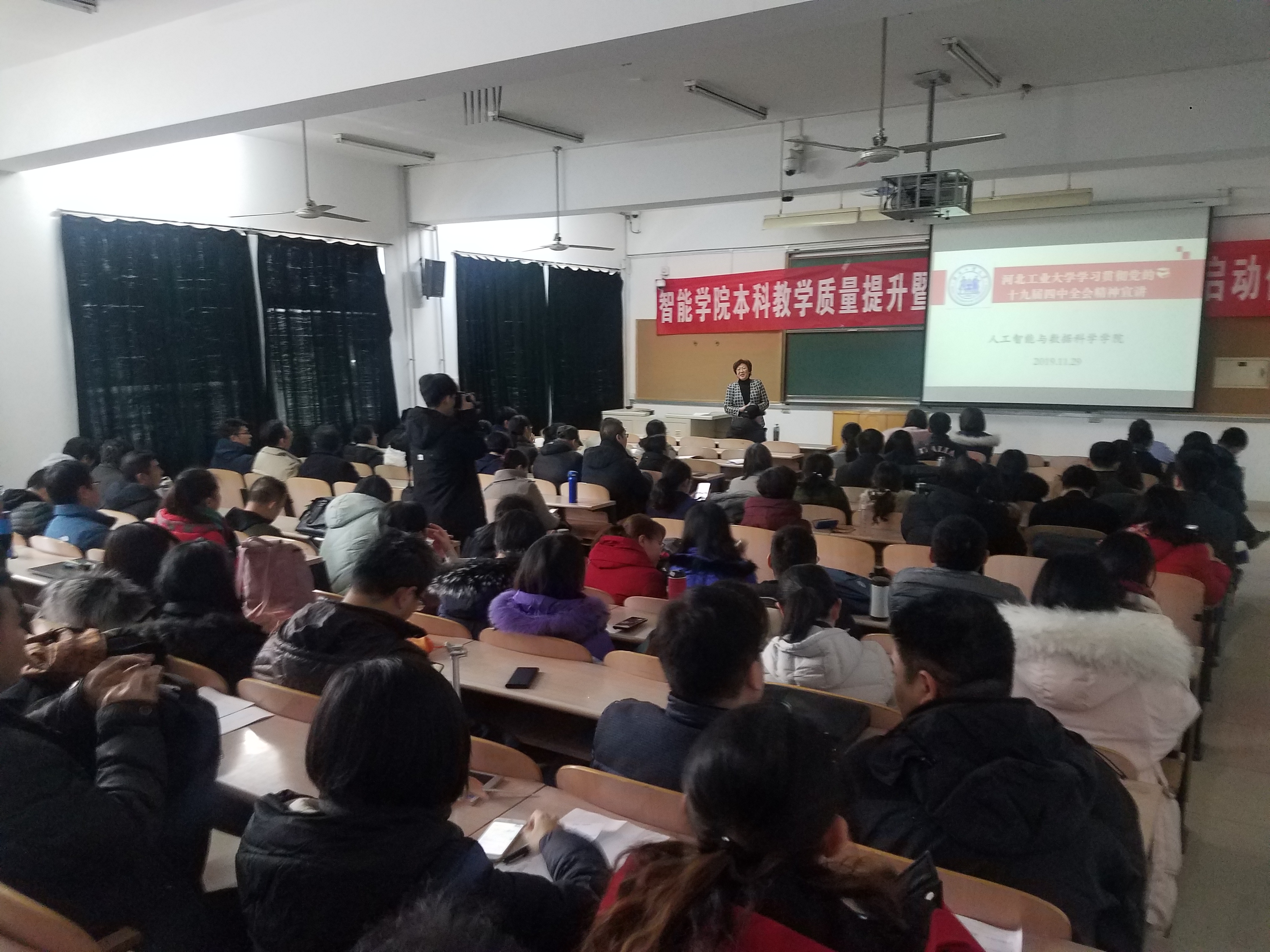 按照公司统一部署,公司学习贯彻党的十九届四中全会精神中央宣讲报告会于11月29日下午在北辰教学楼B306举行。党委书记梁慧超作宣讲报告。她指出,公司上下要把学习贯彻全会精神与 “不忘初心、牢记使命”主题教育紧密结合起来,努力把全会精神和习近平总书记指示要求转化为奋力创造公司发展的强大动力,扎实推进公司治理体系和治理能力现代化,让“和谐、创新、融合、发展”的文化氛围和价值追求成为全院师生的共识和动力,为公司“双一流”建设做出新的更大的贡献。