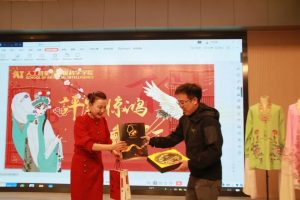 临近尾声,团委书记田晓勇与曾昭娟经理互赠了纪念品,梁慧超书记为曾昭娟经理颁发了非物质文化遗产校园大使聘书,希望能与曾昭娟经理建立长期的合作关系,将“非遗”文化广泛传播、代代传承!