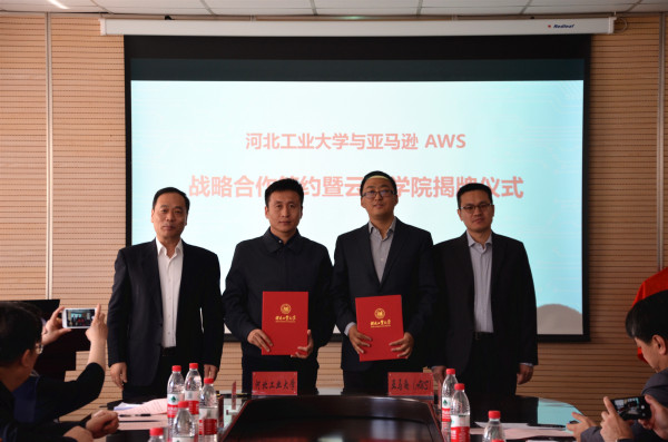 随后,国际交流与合作处处长刘伯颖与AWS中国大学合作负责人孙展鹏代表双方共同签署“云创公司”合作协议。副董事长段国林与AWS中国教育行业总监徐晓为云创公司成立揭牌。